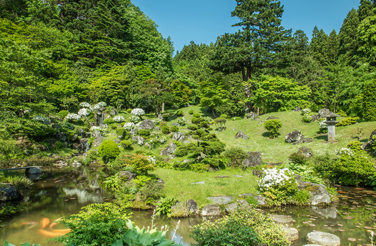The garden tries to recreate Sukhavati, or the pure land in Zen Buddhism.