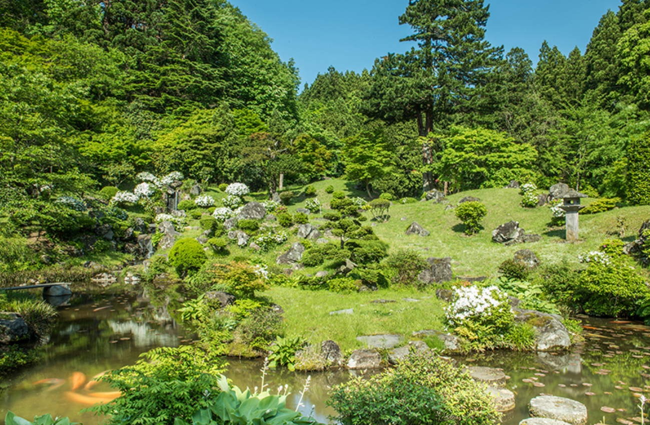 国指定名勝庭園『蓬莱園(ほうらいえん)』は、自然の林泉美を取り入れ、幽玄な趣を呈しています。