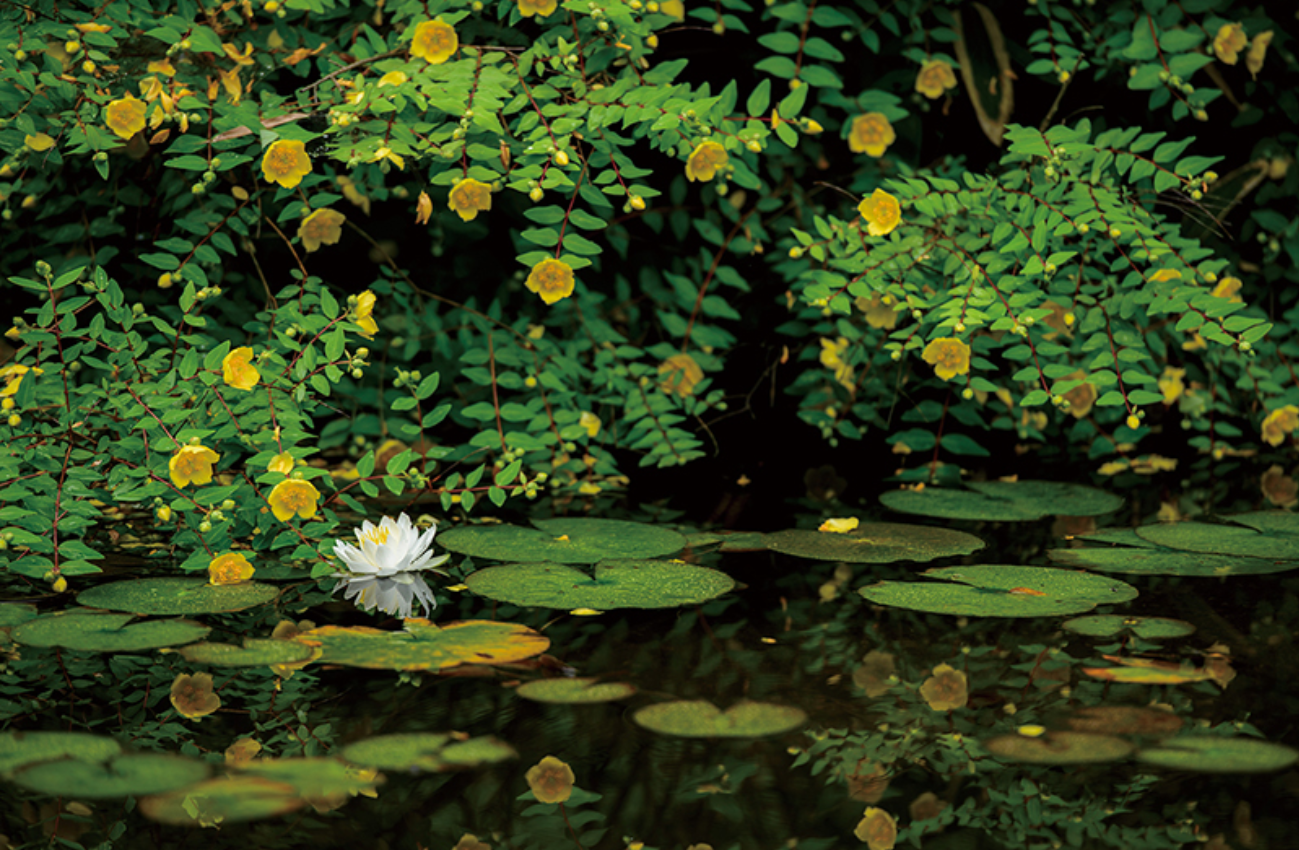 国指定名勝庭園『蓬莱園』の『金糸梅』は、初夏が見頃です。