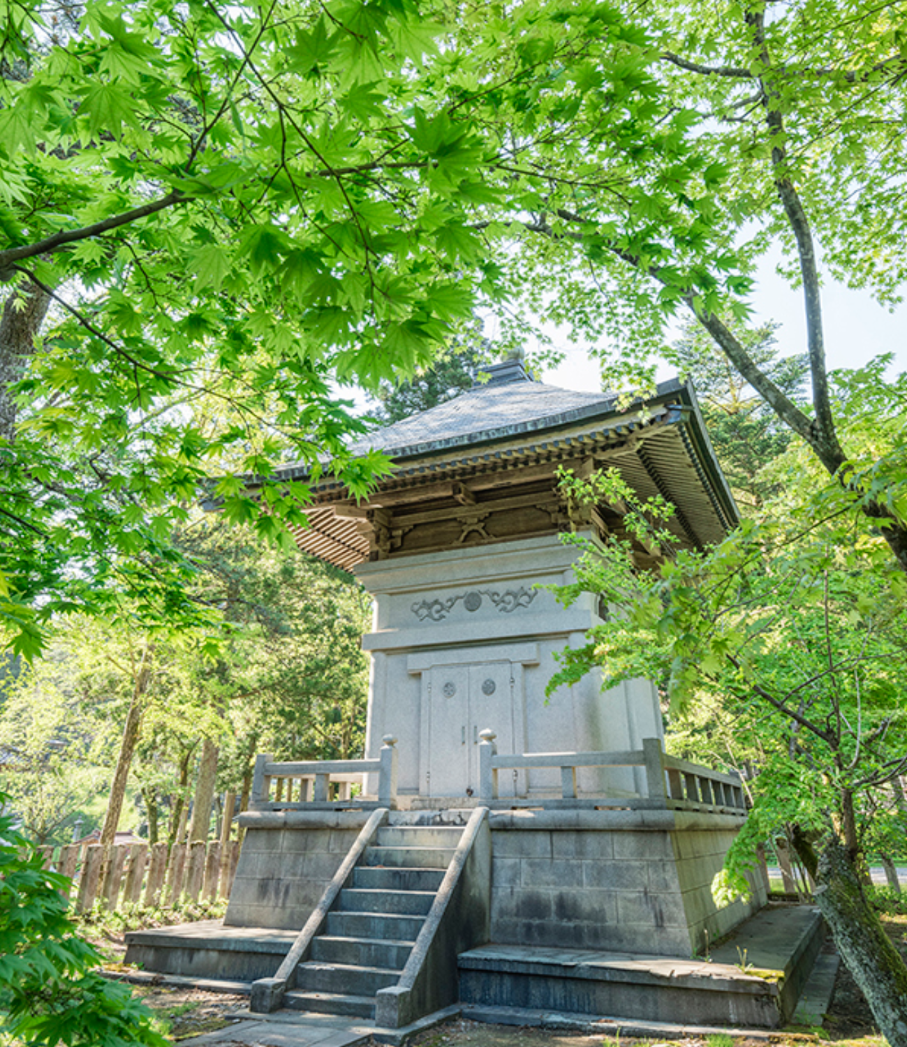 この開基堂は、佐藤正信公はじめ、佐藤家一族を供養するために建立されたお堂です。