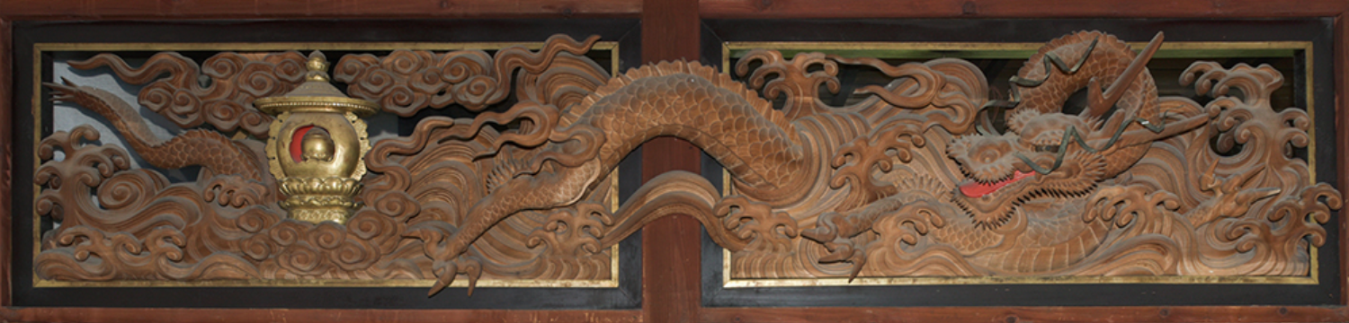 本堂の欄間には美しい彫刻がほどこされ、壮重な建築にひときわ高い格調をそろえています。